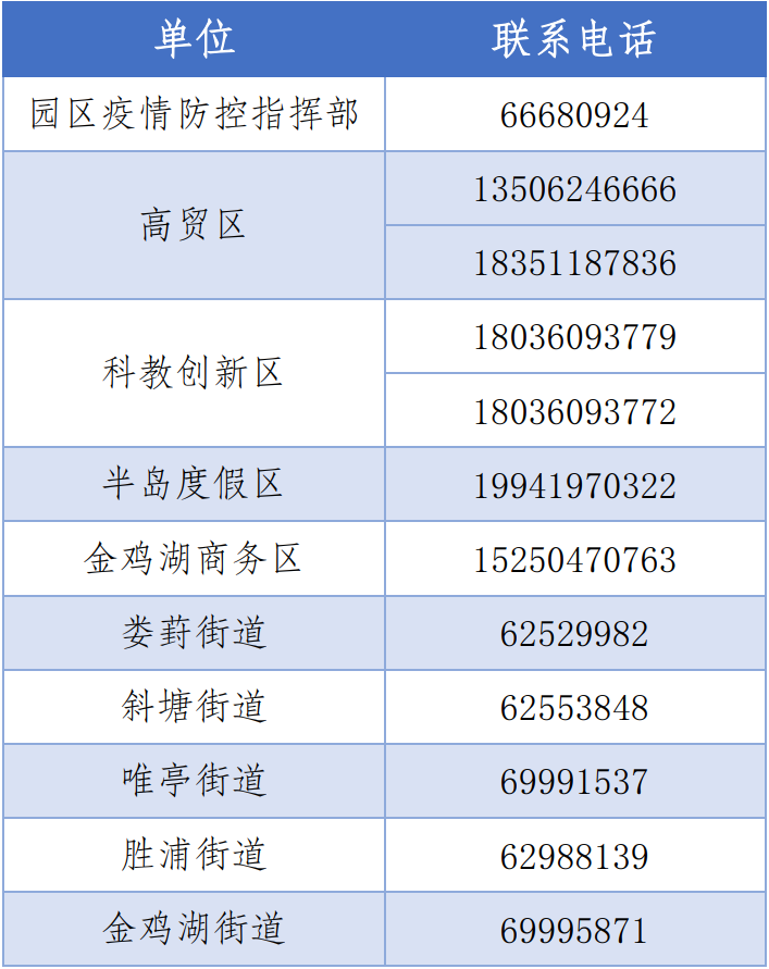 園區疫情防控咨詢電話