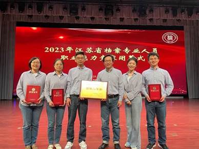 為進一步推動檔案干部實現政治素養和專業素養雙提升、管理能力和業務能力同進步,以過硬本領、優良作風、扎實成效,為蘇州檔案事業高質量發展蓄勢賦能,蘇州市檔案局、蘇州市檔案館聯合舉辦蘇州市檔案系統崗位練兵活動。為進一步提升全市檔案服務外包從業人員的理論素養和實操水平,打造業務精良創新創優的人才隊伍,凝聚推動全市檔案事業發展合力,蘇州市檔案局、市檔案館、市委市級機關工委、市總工會聯合舉辦了主題為“建功‘十四五’奮進新征程”的2023年蘇州市檔案服務外包行業技能競賽?!吧钊雽W習貫徹黨的二十大精神推動檔案事業現代化和高質量發展”調查研究報告、“講業務促實干”業務精品課和蘇州市檔案系統服務外包行業技能競賽各評出一等獎1名、二等獎2名、三等獎3名。本次活動對獲獎人員進行了頒獎。