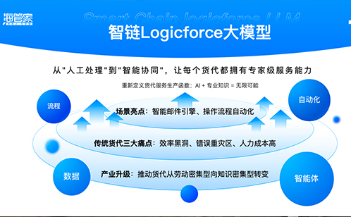 海管家智鏈logicforce大模型聚焦貨代業務全流程,覆蓋咨詢、訂艙、放提、配艙、報關、保險等關鍵業務場景,通過整合提單放單、訂艙確認、報關單證、投保文件、裝箱清單、國際貿易數據及貿易條款等多維度信息,實現對貨代領域內容的精準解析、業務流程的高效聯動以及客戶咨詢的智能回復,為貨代行業智能化升級提供了完整的技術解決方案。該模型通過技術創新驅動的業務模式升級,提升了國際物流服務的效率和質量,不僅為企業自身發展注入了強勁動力,也是人工智能技術在傳統優勢產業的成功應用,有力推動了人工智能產業與實體經濟的深度融合,為構建現代化產業體系提供了重要支撐。