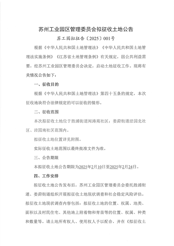 蘇工園擬征告〔2025〕001號--擬征收土地公告