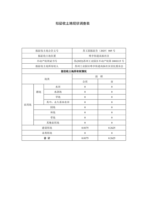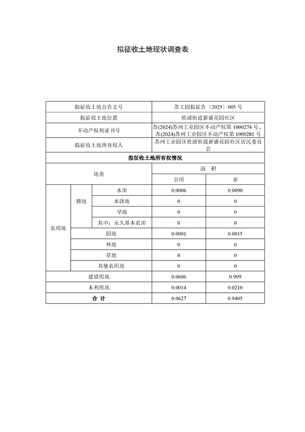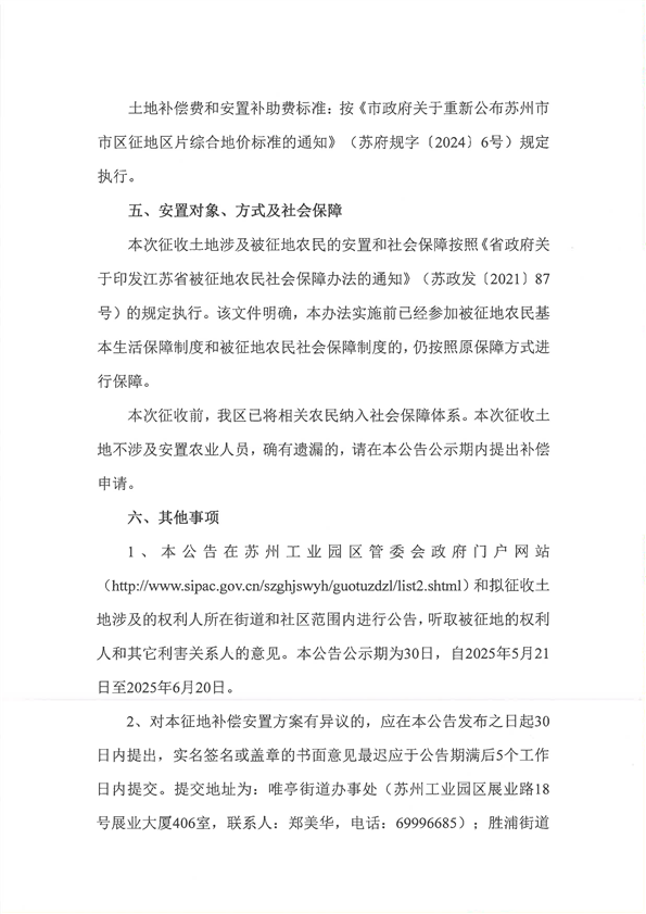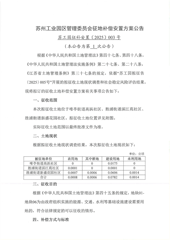 蘇州工業園區2025年度第6批次城市建設用地--蘇州工業園區管理委員會征地補償安置方案公告(蘇工園征補安置〔2025〕003號)