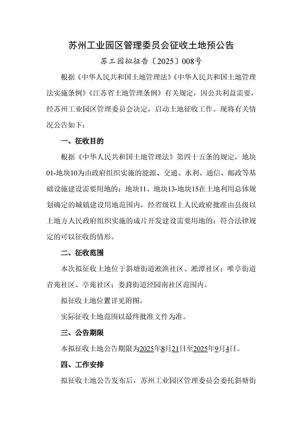 蘇工園擬征告〔2025〕008號--征收土地預(yù)公告