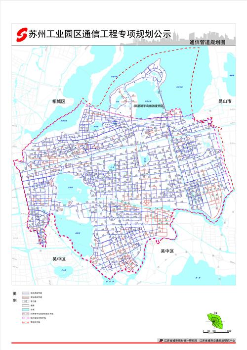 東西向主干通道主要有:婁江大道、現代大道、中新大道、金雞湖大道、獨墅湖大道、312國道等;南北向主干通道主要有:南施街、星華街、唯勝路、長陽路、星塘街、星湖街等。通信主干通道管群數量,一般為12-18孔,出局路由較集中的路段為24孔。