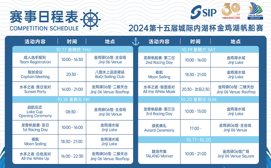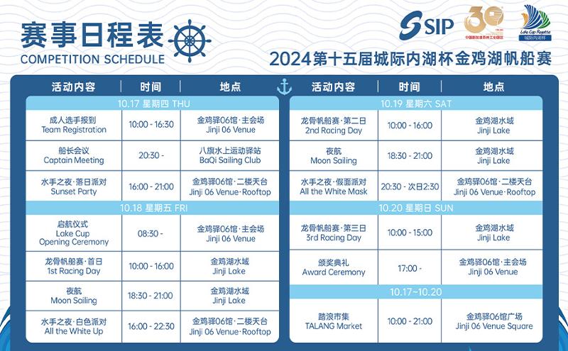 賽事期間,金雞驛06館還將舉辦踏浪市集、落日派對、水手之夜等系列活動,全力打造蘇州與帆船文化融合的潮玩盛會。踏浪市集涵蓋創意攤位、快閃表演、潮流運動、精釀休憩五大主題空間,展現蘇州豐富多彩的美食文化,為大眾呈現耳目一新的優質文創與藝術內容。落日派對與水手之夜則以金雞湖不同時段的景色為靈感,為市民游客打造集社交、美食、精釀、音樂為一體的水上“狂歡節”。