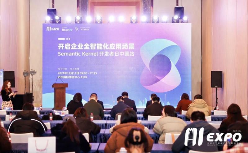 12月11日,2024全球人工智能產品應用博覽會(以下簡稱“2024全球智博會”)主題分論壇之一,開啟企業全智能化應用場景——SemanticKernel開發者日中國站論壇在蘇州國際博覽中心成功舉辦。本次活動是由微軟Reactor、Semantic Kernel中文技術社區共同承辦。蘇州工業園區(以下簡稱“園區”)科創委黨組書記、主任潘瑜,SISPARK(蘇州國際科技園)副總裁吳文杰,微軟中國公共事業部政府及國企行業總經理蔣圣出席論壇。