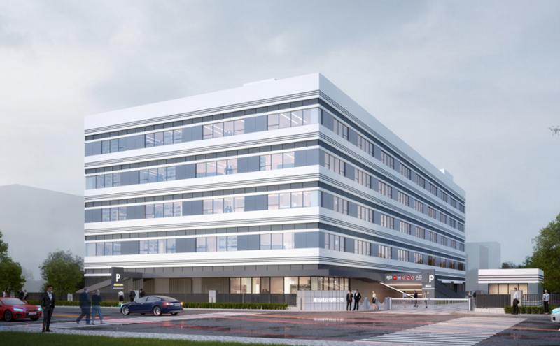 新項目計劃新建6棟5層工業(yè)廠房和若干輔房,總建筑面積89954.14平方米,綠地面積5500平方米,容積率由0.56提升至2.46。新園區(qū)以現(xiàn)代化高品質(zhì)為標準,采用淺色石材顆粒涂料搭配玻璃幕墻,與周邊地塊形成統(tǒng)一的色彩效果。