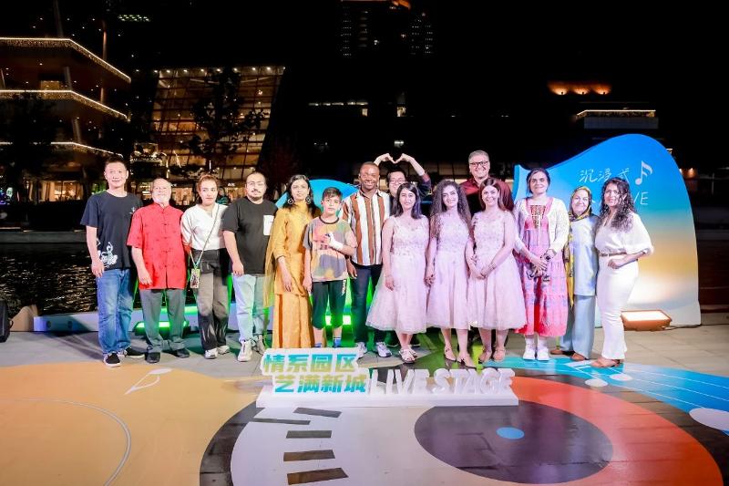 在圓融天幕街,每周上演的“藝術盲盒”演出正重新定義公共空間屬性。2025年煥新升級的“YI說園區”Live Stage,通過三維沉浸式藝術現場打破觀演邊界,百米天幕與電子音浪交織,爵士樂與暮色共舞,吸引數千市民共享藝術之夜。活動創新設立的“煙火民星”計劃,讓科研人員、醫護工作者等普通市民成為舞臺主角。在五月的“情系園區 藝滿新城”活動中,在蘇外籍友人與本地藝術愛好者的跨文化演繹,更彰顯園區“國際范”與“江南韻”的共生魅力。