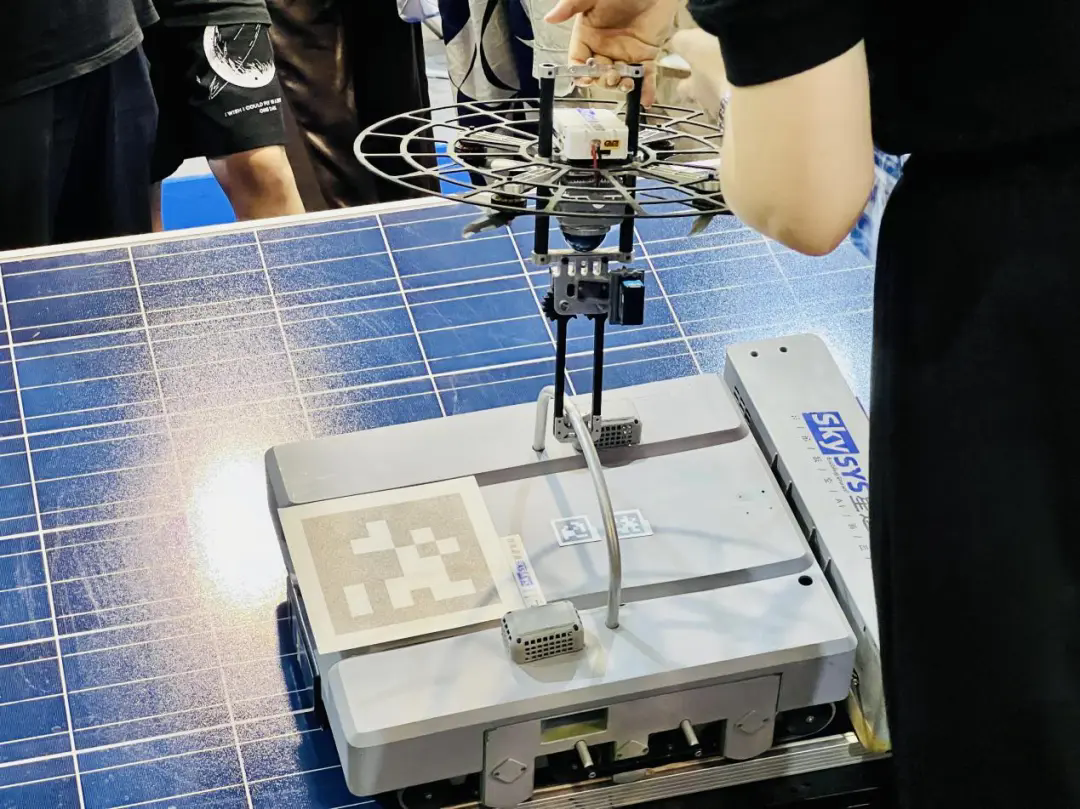 “這是我們最新研發的光伏面板清潔機器人,通過‘搭乘’無人機的方式將其投放到光伏面板上進行自動清潔,結束后無人機還可以復檢清潔效果。”在星邏智能展臺,公司COO劉宇濤一邊講解,一邊向記者展示清潔機器人是如何被無人機抓取,從而實現“打飛的”作業。