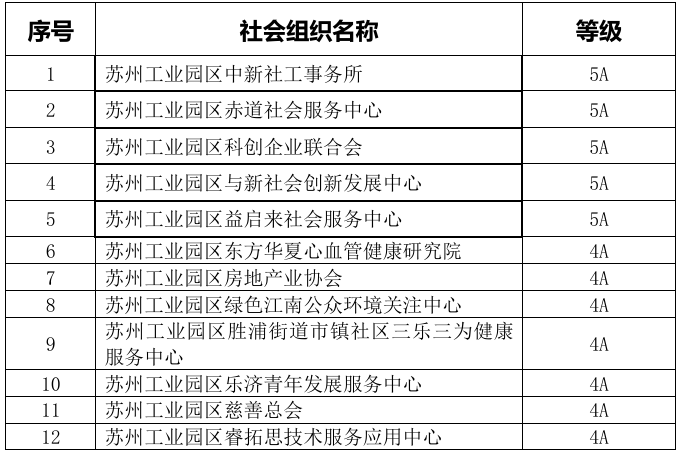 2025年度蘇州工業園區社會組織等級評估結果公示