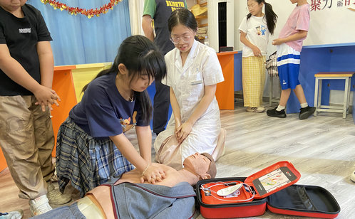 近日,社區衛生服務站的醫護人員為孩子們帶來了一堂生動實用的“生命安全課”。課堂上,醫生結合現實生活場景,講解了日常可能遇到的危險,如玩耍時不慎摔倒、異物卡喉等,并圍繞心肺復蘇(CPR)、自動體外除顫器(AED)使用、氣道異物梗阻處理等展開教學。隨后,在醫生的帶領下,孩子們依次體驗急救操作,讓大家在實踐中學會敬畏生命、守護他人。
