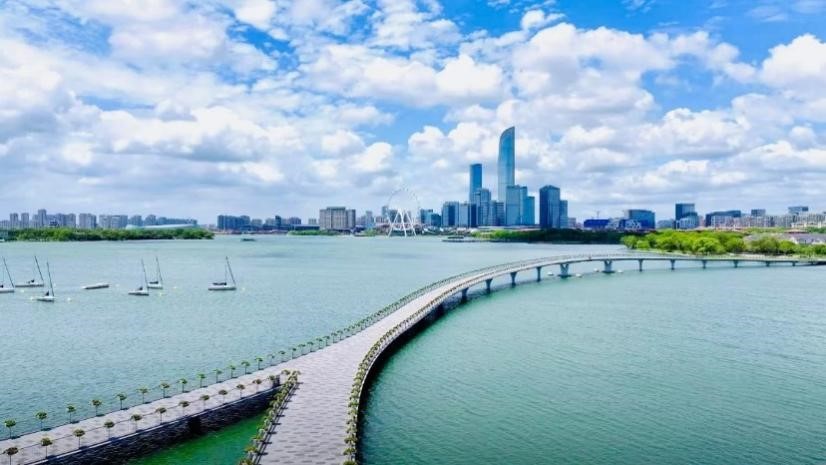 作為水鄉(xiāng)上崛起的現(xiàn)代化新城,園區(qū)河流縱橫、水網(wǎng)密集,擁有金雞湖、獨墅湖、陽澄湖等骨干河流,湖面與周邊錯落的生態(tài)景觀帶相映成趣,勾勒出了一幅“人水和諧”的生態(tài)畫卷。