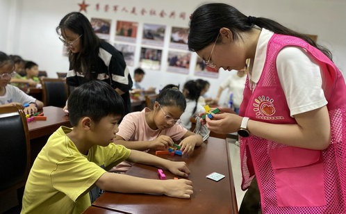 “原來華容道藏著數學奧秘,孔明鎖是古代的‘樂高’!”在蘇州大學“蘇義行”實踐團帶來的“古代游戲科學課”上,孩子們驚嘆連連。星濤社區聯合蘇州大學志愿者,推出暑期實踐課程,以投壺、華容道、七巧板等傳統游戲為載體,通過“原理講解+動手實踐”模式,讓青少年在游戲中感悟科學智慧與文化魅力。