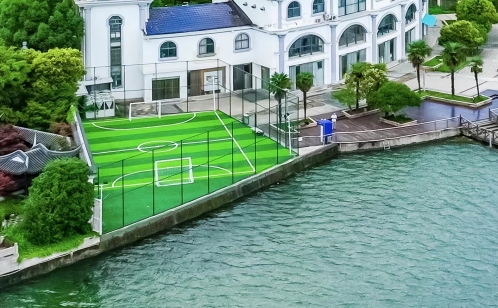 443㎡湖景球場,三面臨水的愜意里藏著鄰里“以球會友”的溫情。運動的鼓點與水波相和,高爾夫社區迷你足球場成為孩子追逐歡笑的樂園。