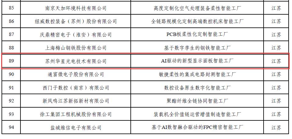 近日,蘇州工業園區企業蘇州華星光電技術有限公司(以下簡稱“TCL華星蘇州基地”)憑借“AI驅動的新型顯示面板智能工廠”成功入圍2025年度卓越級智能工廠項目名單,摘得智能制造領域國家級頂尖榮譽。