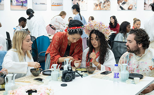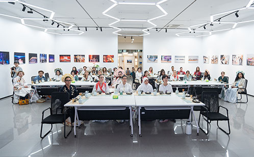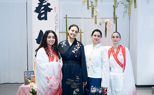 現(xiàn)場,“未來顯影——獨(dú)墅湖畔的文化底片”主題展覽拉開序幕。展覽集中呈現(xiàn)了科教創(chuàng)新區(qū)歷年文化活動(dòng)的精彩瞬間,并創(chuàng)新性地以四季色系為脈絡(luò),打造二十四節(jié)氣傳統(tǒng)文化展區(qū)。春櫻粉、夏荷碧、秋杏金、冬湖藍(lán)四個(gè)色區(qū)對應(yīng)著不同季節(jié)的文化活動(dòng)與傳統(tǒng)技藝。中外學(xué)子們身著漢服漫步其間,在移步換景中感受獨(dú)墅湖四季流轉(zhuǎn)的文化魅力,體驗(yàn)傳統(tǒng)文化與現(xiàn)代科教融合的獨(dú)特韻味。