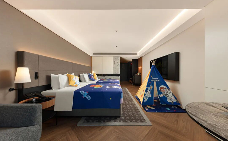 酒店共有客房154間,包含高級房、豪華房、尊享房、湖景房、家庭房、行政房及套房等多種房型,能夠滿足商務差旅、城市微度假、闔家旅行等不同需求,配套會議室、自助餐廳、24H健身房、24H洗衣房等,滿足多元化需求。