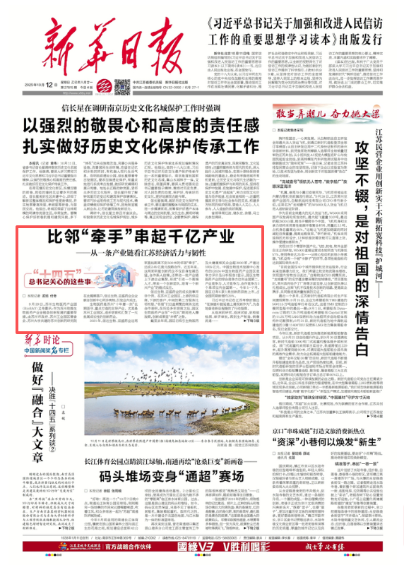 “十四五”以來,江蘇以打造世界級產業集群為抓手,在強鏈補鏈延鏈的道路上以“探路者”的姿態和“挑大梁”的自覺敢為善為,全面提升產業鏈現代化水平——