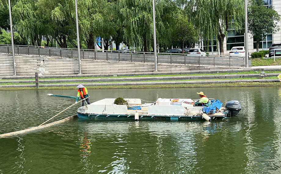 “夏季水生植物生長速度快,我們會根據(jù)不同的河道情況精準(zhǔn)制定相應(yīng)的打撈處置方案,科學(xué)部署船只和人員,并根據(jù)每天巡查情況靈活調(diào)整,針對一些重點(diǎn)區(qū)域也會加大打撈力度和頻次,確保河清水暢?!笔姓?wù)集團(tuán)水利工程師王曉宇介紹,當(dāng)前正值夏季高溫期,市政服務(wù)安排工作人員早晚作業(yè),避開中間高溫時(shí)段;同時(shí)通過引入長臂船、智能化無人設(shè)備,為大型打撈設(shè)備駕駛艙配置空調(diào)風(fēng)扇等,提升作業(yè)效率和人文關(guān)懷,更好地保障人員健康,推動園區(qū)水環(huán)境持續(xù)穩(wěn)定。