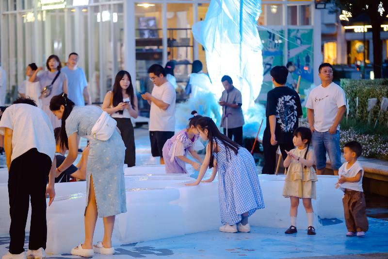 市集區域涵蓋手作藝術、精品咖啡、創意文創、特色輕食等多個類別。游客穿梭其間,品味、交談、拍照,夏夜的歡愉氛圍持續升溫。四大互動游戲吸引不少家庭與年輕人駐足挑戰,五大主題打卡裝置前也排起長隊,成為夜間朋友圈的“高光景點”。