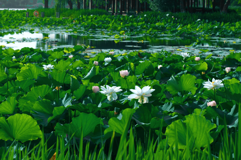 Lotus flowers can be also found in communities. The Xietang Lotus Park, for example, ingeniously connects the garden, leisure square and lotus pool, composing a beautiful picture with water as the canvas and lotus flowers as the strokes.