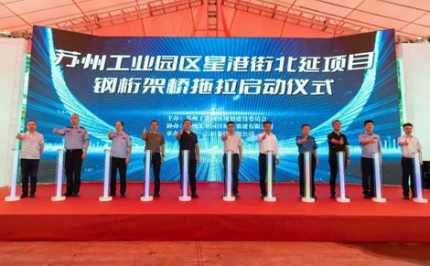 The towing operation for the installation of the steel truss overpass crossing the Shanghai-Nanjing Expressway in SIP was launched on July 12, marking a significant progress of the construction of the north extension of Xinggang Street.