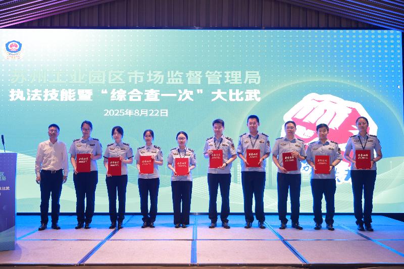 來自園區市場監管局各分局、稽查大隊的6支隊伍以扎實的法律知識、精湛的業務技能和出色的應變能力,呈現了一場精彩、專業的較量。經過激烈角逐,度假區分局代表隊等3支隊伍獲得了本次比賽的優勝獎。活動取得了以賽領學、以賽促干、以賽優服的預期目的,達到了實踐運用“綜合查一次”、推動開展“鐵拳”行動、深化建設執法“鐵軍”的良好成效。