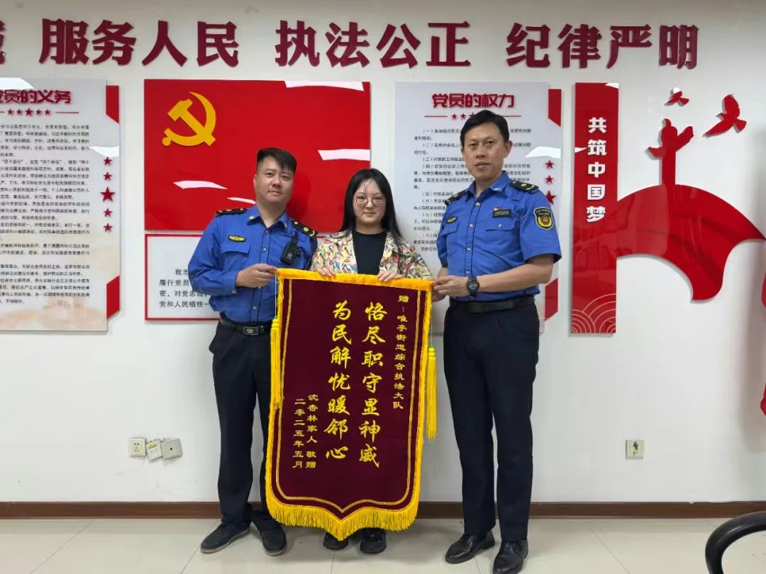 近期,唯亭街道綜合執法大隊夷亭中隊隊員董高鋒、莊曙堅、馬佳俊在日常巡查時,發現一位老人神色迷茫、反復徘徊。經了解,老人本居住在昆山正儀,因不熟悉路線誤入唯亭街道,迷失方向。憑借日常應急培訓經驗,隊員們判斷老人可能出現中暑跡象,隨即將老人攙扶至執法車內休息,開啟空調降溫,并持續關注其身體狀況。同時,立即通過老人手機成功聯系上其孫女,清晰告知老人的具體位置和身體狀況。考慮到天氣炎熱、返程距離較遠且需攜帶電動車存在安全隱患,隊員們主動使用執法車輛護送老人及其孫女回家,獲老人家屬感激送錦旗致謝。